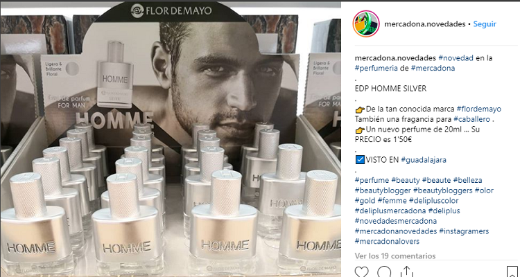 Siguiendo con las novedades de Eroski y Mercadona, tenemos el perfume EDP Homme Silver, de la marca Flor de Mayo. También ha sido visto en Mercadona Guadalajara, y es una fragancia de caballero, la versión para hombre de lo que hemos visto antes.