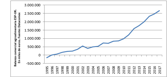 Dentro del proceso de diversificación de las exportaciones españolas, uno de los mercados geográficos donde más ha dirigido su foco es a Gran Bretaña, especialmente gracias a la evolución de las preferencias de sus ciudadanos por productos de mayor calidad a precios competitivos. En este sentido, en el período 1995-2017, el tamaño del mercado británico para el agro español ha crecido a un ritmo del 6,5% medio anual hasta alcanzar un valor nominal de 3.802 millones de euros. Estimando el cierre de 2018, proyectando la tasa de crecimiento promedio anual de las últimas dos décadas, las exportaciones superarán los 4.000 millones de euros (en torno a 4.050 millones).