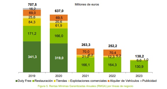 Pero los resultados del duty free no están siendo satisfactorios. Aunque siga siendo la principal fuente de ingresos comerciales, su crecimiento está casi estancado. Destaca especialmente la evolución de las ventas en los negocios operados en propio, servicios VIP y aparcamientos con crecimientos del 56,5% y del 8,9%, respectivamente. La restauración (+14,3%) y las tiendas (+16,1%) también tiran de este crecimiento.