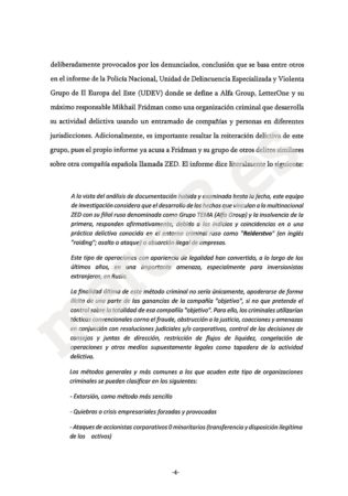 Un grupo de accionistas minoritarios de DIA bajo la Asociación de Perjudicados de DIA presentó hace unas semanas una denuncia ante la CNMV “como organismo responsable de velar por la integridad y transparencia de las sociedades que cotizan en las bolsas españolas”. En dicho documento se recogen extractos de la investigación policial llevada a cabo sobre Fridman y el entramado “criminal” que creó para hundir a otra compañía española: ZED.