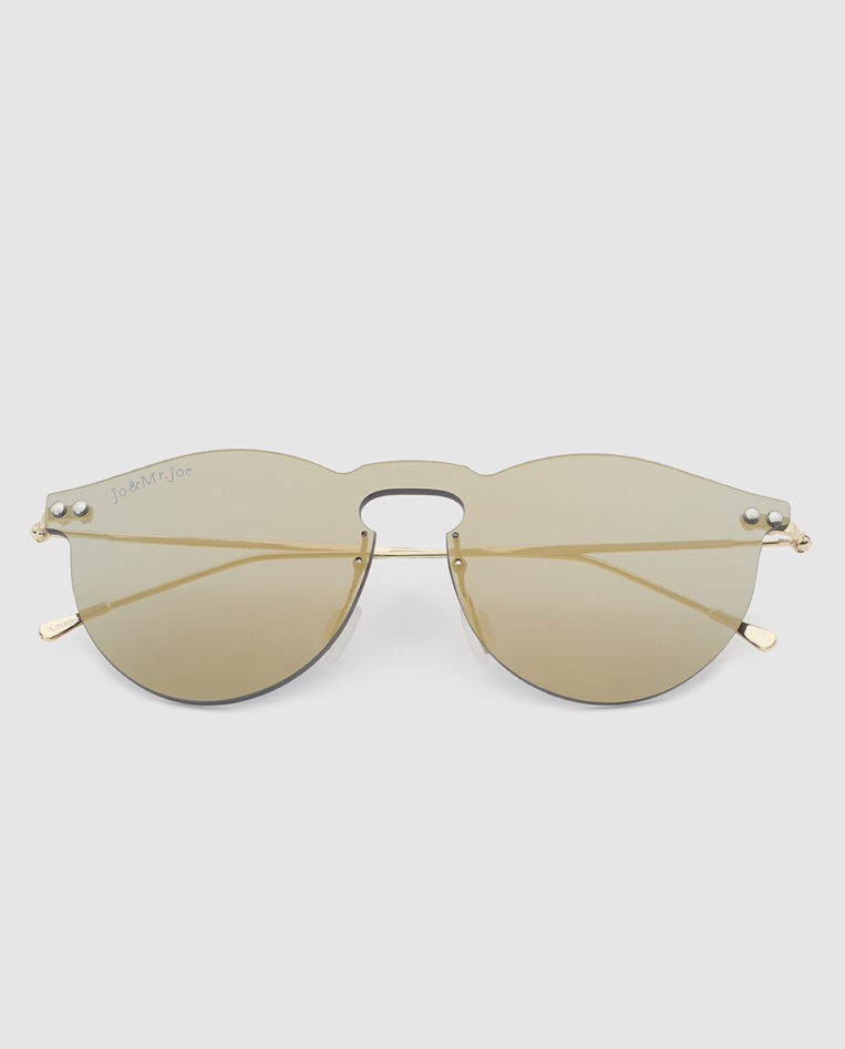 Otra opción para regalo navideño son estas gafas modernas de la marca Jo & Mr. Joe. Son unas gafas de sol sin montura con lente plana tipo pantalla en color verde espejado y varillas metálicas doradas. Un diseño muy moderno que seguro que le gustará a la persona a la que se lo regales, especialmente si es coleccionista de gafas de sol.