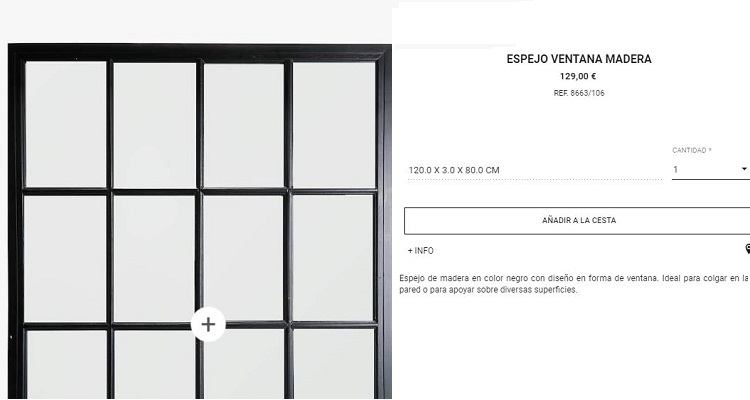 El siguiente producto de Primark, ZARA Home y H&M , es un espejo de madera con diseño en forma de ventana de Zara. Este espejo simula lo que es una ventana, pero realmente es un espejo.