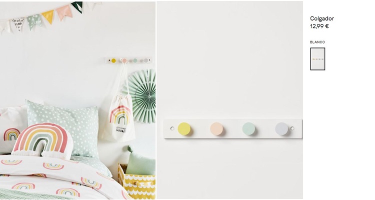 El siguiente producto de Primark, ZARA Home y H&M, es un colgador de H&M. Estamos ante un práctico colgador que bien con 4 ganchos, los cuales están pintados cada uno de un color. Este producto es ideal para tener en una habitación, pues es muy práctico para colgar chaquetas.