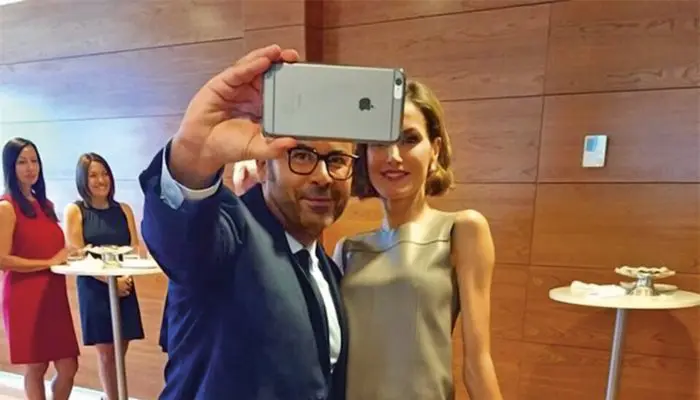 Doña Letizia no le tiene miedo a la cámara, todo lo contrario. Tampoco le importa que la toquen por mucho que el protocolo de seguridad y la escolta arrebaten las manos de los curiosos que palpan el fibrado cuerpo de la Reina. En la imagen podemos ver, cómo Jorge Javier Vázquez, tras pedirle un selfie, Letizia accede, y con total tranquilidad sonríe y posa: «Con mi nueva mejor amiga, Letizia. Gracias, Reina», escribió el presentador de ‘Sálvame’ en sus redes sociales.