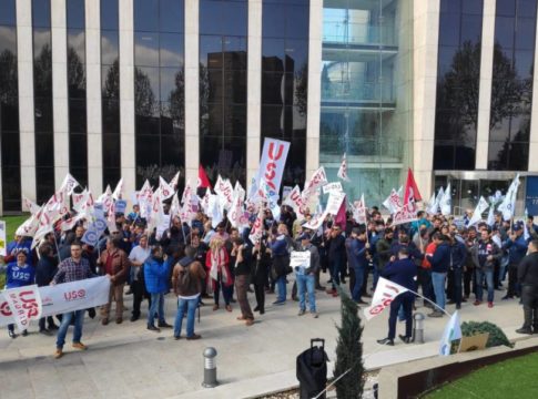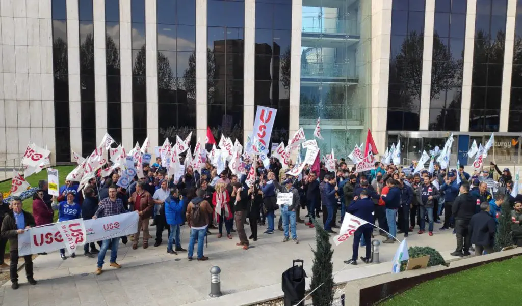 La manifestación ha transcurrido de una manera pacífica y sin incidentes. Cuatro miembros de los sindicatos representados han leído un comunicado conjunto para protestar por este ‘proyecto lean’. Una lectura a la que le ha seguido una sonora pitada por parte de los más de cien empleados allí concentrados. El próximo día 16 de abril se escribirá el siguiente capítulo de este conflicto en el que si estarán CCOO y UGT. Estas dos centrales hoy han decidido no participar en esta protesta. Algunos afirman que por «prudencia» y otros son sólo «guerras sindicales».