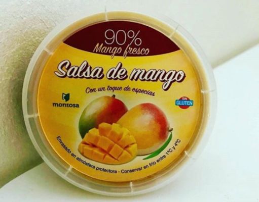 De primeras, este producto parece un gran invento. Una salsa fresca de mango hecha con un 90% de mango natural. Toda una delicia. Pero la cosa cambia cuando abrimos la tapa de este producto.