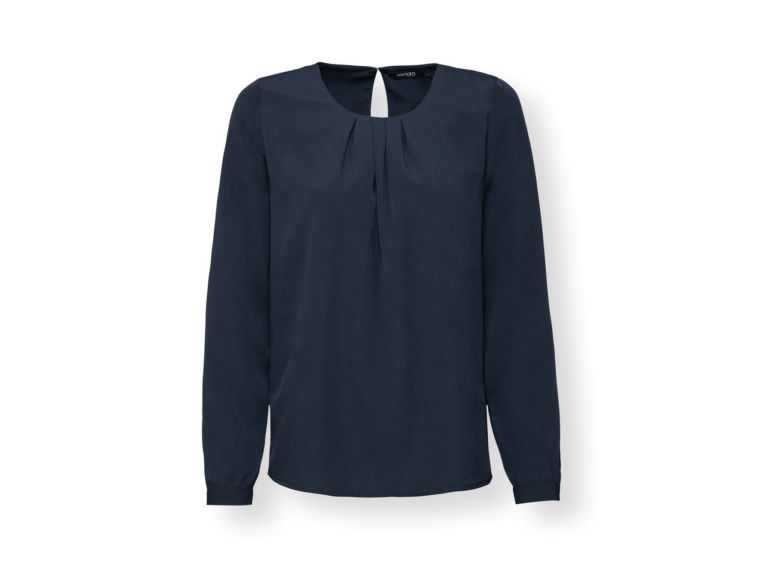 Esta blusa tiene una caída bastante vaporosa, lo que hace que sea ideal para los looks más formales. Tiene cuello de túnica con efecto cruzado, bajo elástico, escote trasero, puños con botón y un efecto plisado justo debajo del cuello. Está también disponible en dos modelos y su precio es de 6,99 euros.