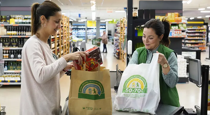 Esta última alternativa es el fruto del compromiso conjunto de clientes, empleados y proveedores, y de su implicación en el aprovechamiento de los recursos, la reducción, la reutilización y el reciclaje para alargar la vida de los materiales y evitar que acaben en el vertedero. Para su fabricación la compañía, aplicando los principios de la economía circular, reaprovecha anualmente más de 3.000 toneladas de plástico procedente de los embalajes recuperados en sus tiendas, que después envía a sus bloques logísticos por logística inversa y desde allí al gestor autorizado Saica, que lo convierte en granza, para que el fabricante Plasbel le dé una segunda vida en forma de bolsas para transportar la compra.