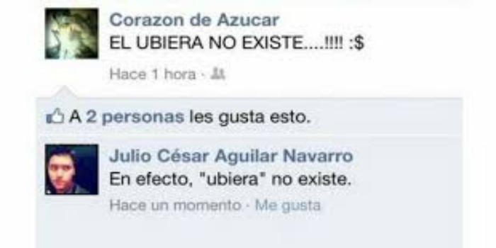 Los errores ortográficos no faltan en Facebook, ya lo hemos visto y comprobado, pero una cosa es abreviar y poner ‘q’ en vez de que y otra poner palabras que no existen, aunque ne este caso Corazon de Azucar tenía algo de razón, el ubiera no existe.