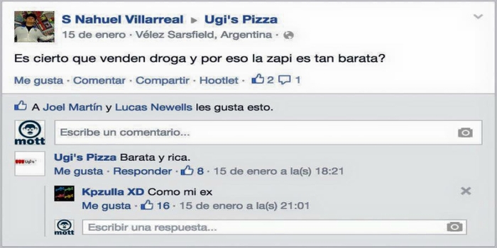 ¿Otro ejemplo? El de la imagen. ¿Quién te preguntó tu opinión, Juli? Los chicos de Ugi’s Pizza no querían saberlo.