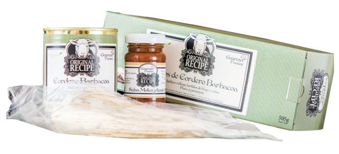 Se trata de un kit para 2 personas tacos de cordero barbacoa. El kit contiene los siguientes productos: tacos de cordero barbacoa con relleno, tortillas de trigo y salsa Gourmet Passion México. Hecho con pierna de cordero deshuesada, laurel, especias y sal. Vamos, que es el menú para un auténtico mexicano.