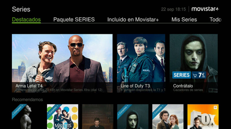 Si quieres disfrutar de más series tendrás que abonar 7 euros más de la tarifa habitual en Movistar TV. Eso sí, Movistar ofrece una oferta muy completa en cuestión de series, tanto estrenos en Estados Unidos como maratones de series, temporadas completas y versiones originales subtituladas.