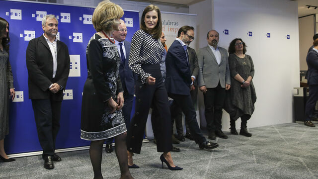 Letizia decidió lucir un look que nos es muy familiar en el acto de ‘Medios de Comunicación y Salud Mental’ en la agencia EFE de Madrid. La reina decidió llevar un pantalón culotte de Hugo Boss con una blusa de topos de Carolina Herrera, justo el mismo conjunto que llevó en el día de la polémica.