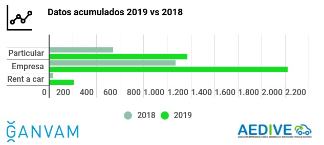 El canal de empresas ha matriculado 2.016 turismos eléctricos puros en España hasta abril, un crecimiento del 89,1%, según datos consensuados entre Aedive y Ganvam. Dado que el total han sido 3.385 unidades, el 60% de los vehículos eléctricos puros han sido comprados por empresas en España estos cuatro meses de 2019.