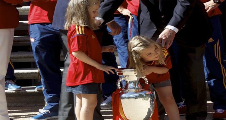 A Sofía y a Leonor les gusta el deporte. Por el momento no han mostrado el mismo interés que sus primos por la vela o el esquí, pero practican otro tipo de deportes como ballet, bádminton y voleibol. Sofía es además una gran apasionada del fútbol, tal y como podemos ver en la imagen, tomada el día que llegó la Selección Española a Zarzuela tras proclamarse campeones de la Eurocopa.