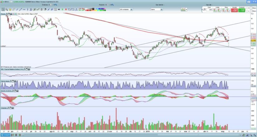 A pesar de que la cotización dibuja un canal alcista, ha encontrado un suelo en el nivel de 5 euros en el que rebota una y otra vez desde enero. Según Sergio Ávila, “la pérdida de la media de 200 (línea roja en el gráfico), si se diera el caso y la del soporte de los 4,85 euros serían una muy mala noticia para la cotización del banco ya que aumentaría la presión vendedora”.