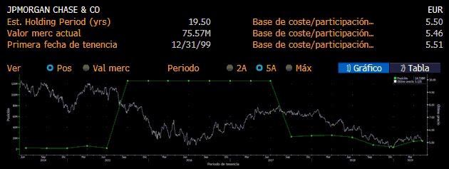 La firma ha ganado fuerza a lo largo de 2019 en el banco presidido por Carlos Torres después de una fuerte desinversión en el tercer trimestre de 2017. De esta manera, JPMorgan se ha convertido en el 18º máximo accionista de la entidad español al controlar el 0,23% del capital social de la entidad española con un valor de mercado que supera los 75 millones de euros.