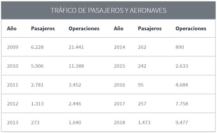En la actualidad, “el aeropuerto no opera tráfico comercial de pasajeros, siendo el tráfico, prácticamente en su totalidad, de aviación general, escuela de pilotos, vuelos de Estado, servicios médicos y Organización Nacional de Trasplantes (ONT) y operaciones del helicóptero de servicio de rescate de montaña de la Guardia Civil”, apuntan fuentes de Aena.