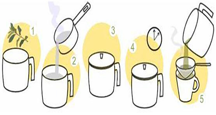 Llega el momento de esperar 5 minutos para dejar reposar la mezcla, pero antes es fundamental taparlo. Así se evita que los principios activos de la planta se evaporen. Para los que usan una tetera, no hay misterio, pero para aquellos que beben su te en bolsita y salido directo del microondas, usar un plato como tapadera será la mejor solución. Finalmente, se retiran las hierbas y la infusión está lista. Si eres de sabores dulces o muy creativo, es el momento de darle el toque final para su presentación.