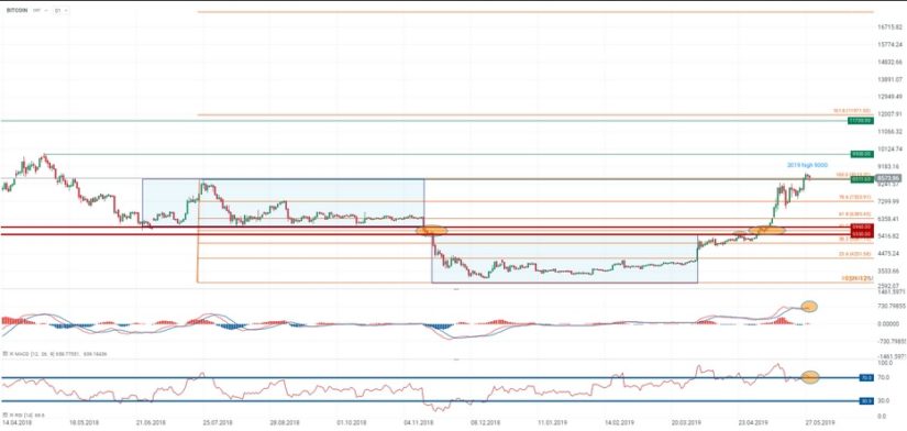El pasado 28 de mayo, la criptomoneda alcanzó un nuevo máximo de 2019, los 9.000 dólares y recupera mucha de la volatilidad perdida durante el 2018.