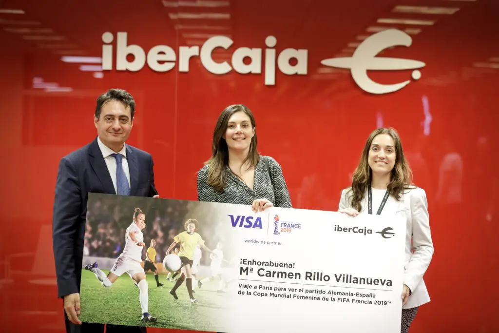 Ibercaja ha hecho entrega del premio que ha sorteado entre los titulares de sus tarjetas que, además, pertenecen al colectivo de Privilegios EURO 6000. El premio, valorado en 5.000 euros, consiste en un viaje a París, para dos personas, con todos los gastos pagados para asistir al partido que jugará España contra Alemania el próximo miércoles, 12 de junio, gracias a Visa.