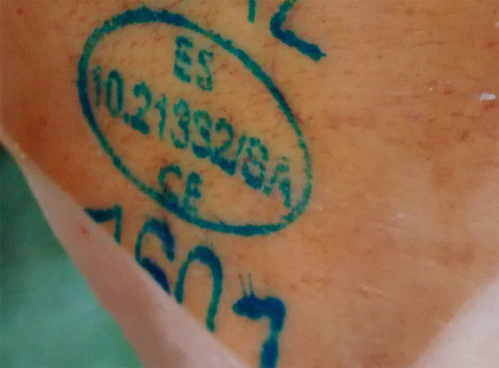 Seguro que lo has visto en las patas o paletillas de jamón que has comprado. Es un sello en forma de óvalo con varias letras y números impreso sobre el propio cuero del jamón.