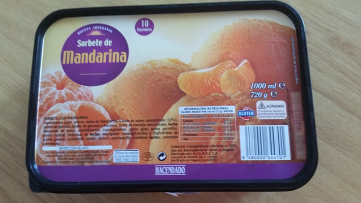 Otros de los helados más sanos son los sorbetes, pues están elaborados con frutas. En Mercadona puedes comprar sorbetes con varios sabores. El de mandarina tiene un sabor espectacular. Su textura es suave y cada cucharada se deshace en la boca.