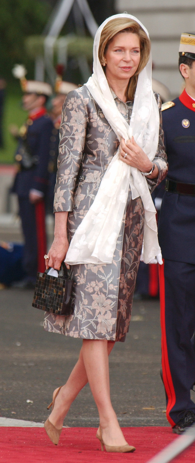 Claro está que al llegar al recinto en el que ofrecían el aperitivo, Noor de Jordania se quitaría ese impresionante abrigo, pero allí las cámaras no llegaban, por lo que nos quedamos con las ganas de ver qué llevaba debajo de su abrigo.