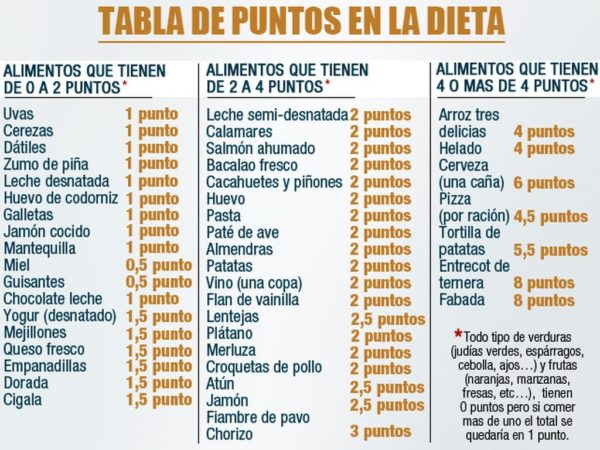 La dieta de los puntos consiste en asignarte unos «puntos base», como si fuese un juego. Según tu edad, sexo, peso y estatura ganas X puntos y a medida que vas añadiendo alimentos te van quitando puntos hasta quedar a cero. Cuantas más calorías tenga una comida más puntos tendrá, pero no te preocupes que al día siguiente te los devuelven todos y otra vez a empezar.