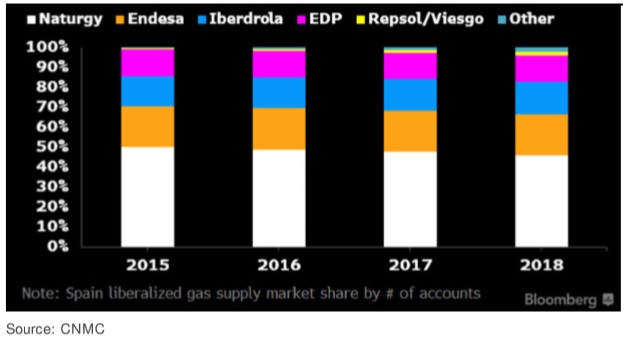 ¿Pero hasta qué punto debe estar preocupada Naturgy por su pequeña pérdida de peso en la cuota de mercado? Según Bloomberg hay una certeza en el negocio de la energía: los clientes son bastante fieles. De hecho, la tasa de cambio en el gas natural es de las más bajas dentro del sector energético.