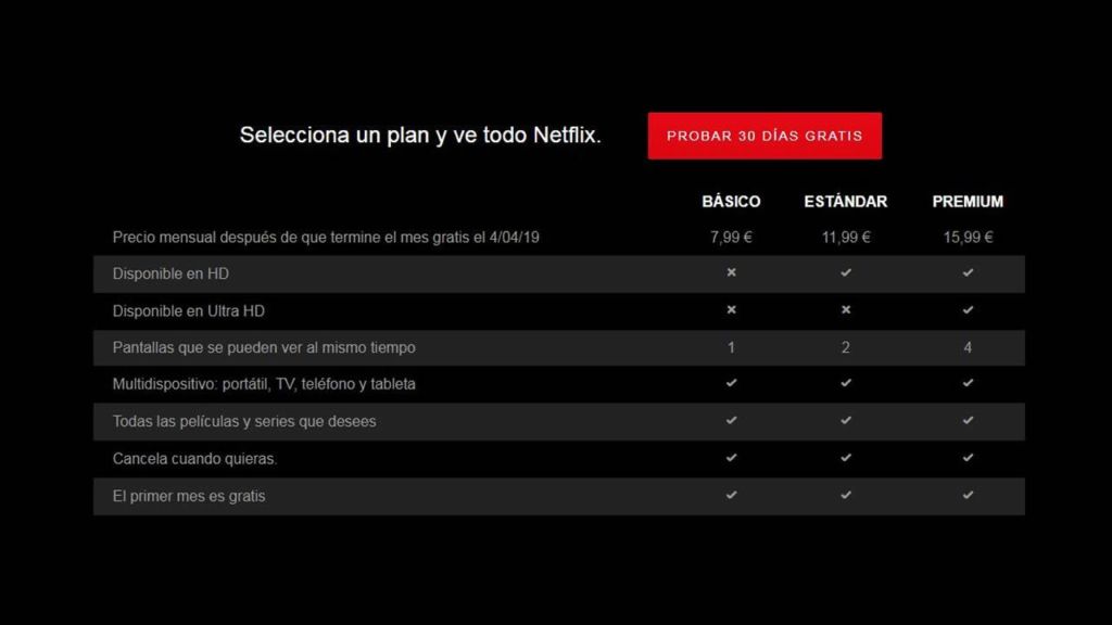 Por otra parte, el paquete premium, que puede ser usado por cuatro pantalals y calidad ultraHD, subiría de los 13,99 euros a un precio de 17,99 euros. Casi 20 euros.
