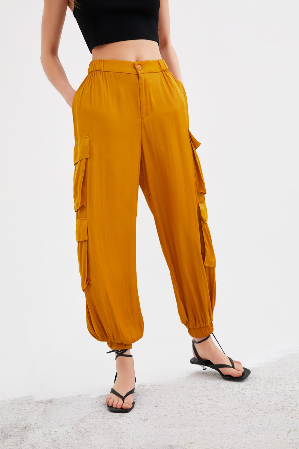 Es un pantalón de tiro alto con cintura elástica. Bolsillos de plastrón con solapa en laterales. Bajo acabado en puño elástico. Cierre delantero con cremallera y botón. Disponible hasta la talla L, aunque son bastante elásticos y anchos. Su precio es de tan solo 9,99 euros. ¿Qué más podemos pedir con esos precios que ofrecen en las tiendas de Amancio Ortega?