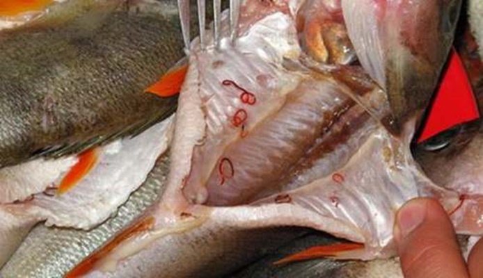 El diphyllobothrium latum, es un parásito llamado gusano ancho que vive en los mamíferos y que se transmite por el consumo de pescado crudo no tratado. Puede alcanzar viviendo en un intestino hasta los diez metros de longitud.