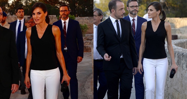 Una combinación cromática muy habitual en la Reina Letizia es el blanco y negro. Un estilo elegante y clásico que no pasa de moda. En su última visita a Palma de Mallorca para asistir al Atlàntida Film Fest, escogió un top de tirantes negros combinado con un pantalón blanco de verano.