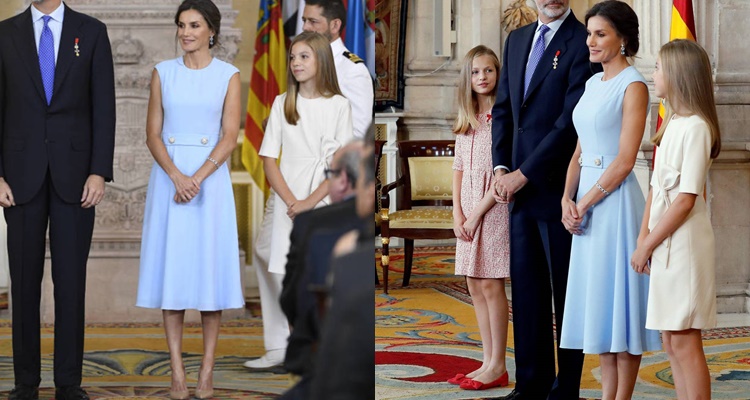 Uno de los mejores looks veraniegos de los últimos tiempos de Letizia es sin duda este vestido en color azul cielo. Un tono que le favorece mucho y dulcifica sus rasgos.