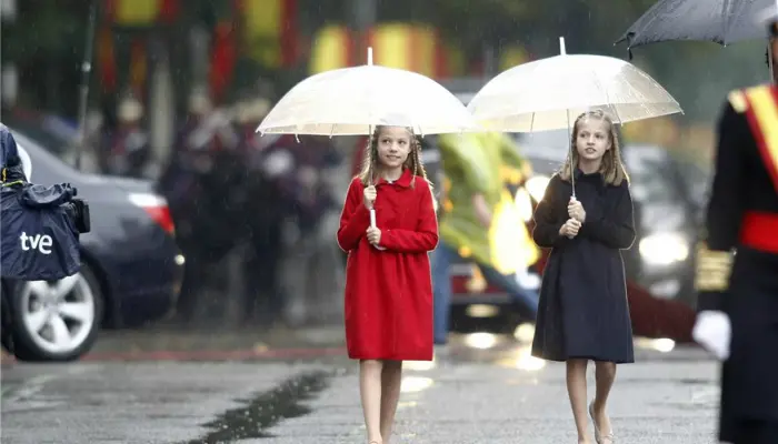 Sofía, además, muestra una sonrisa muy tímida al pueblo, mientras que Leonor esboza una gran sonrisa y saluda a conciencia. Sabe que tiene un papel muy importante dentro de la historia de España, el ser la primera mujer que reina por ley, y tiene que estar a la altura de las circunstancias.