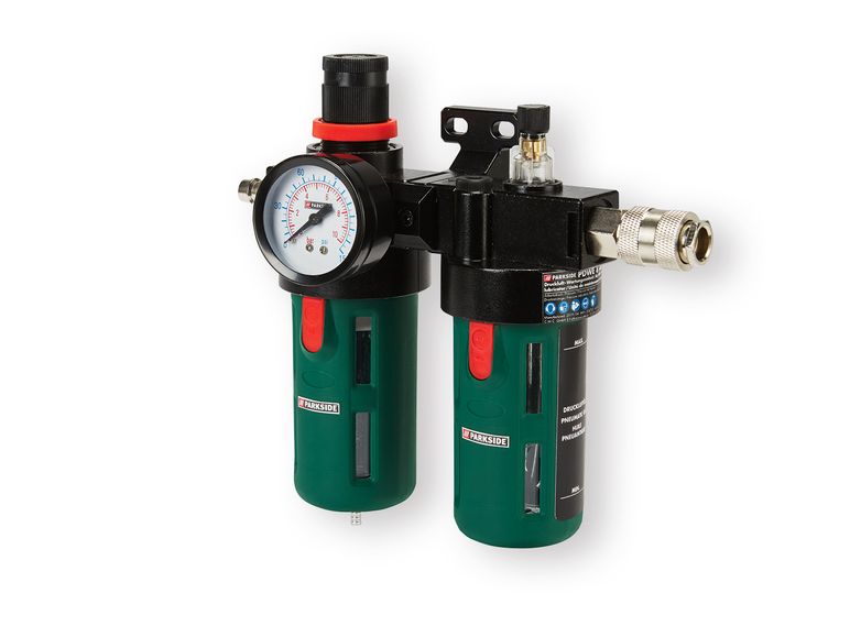 Otro accesorio para compresor es la unidad de mantenimiento neumática 3 en 1. Regula la presión, prepara el aire comprimido y lo lubrica. Pero no solo esto. La unidad de mantenimiento tmbién tiene estas otras características:
