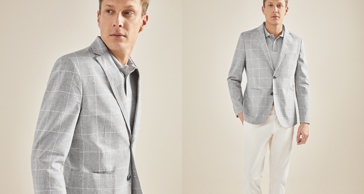 Una combinación que puede dar mucho juego en las fiestas de verano y principios de otoño, y que siempre resulta formal es la de gris y blanco. Esta americana de Cortefiel está rebajada a 49,99 euros.