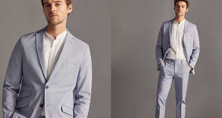 Si tienes una fiesta y quieres un look más formal, llévalo con una camisa de cuello mao y olvida la corbata. Esta americana rebajada te costará 49,99 euros. El pantalón de este traje tiene un precio de 29,99 euros.
