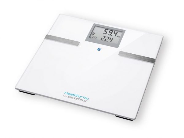 Esta báscula de Lidl tiene una función bluetooth. Con esta báscula puedes disfrutar de todas las funciones: índice de grasa corporal, masa muscular, agua del cuerpo, cantidad de calorías diarias recomendadas, grasa corporal y masa ósea.