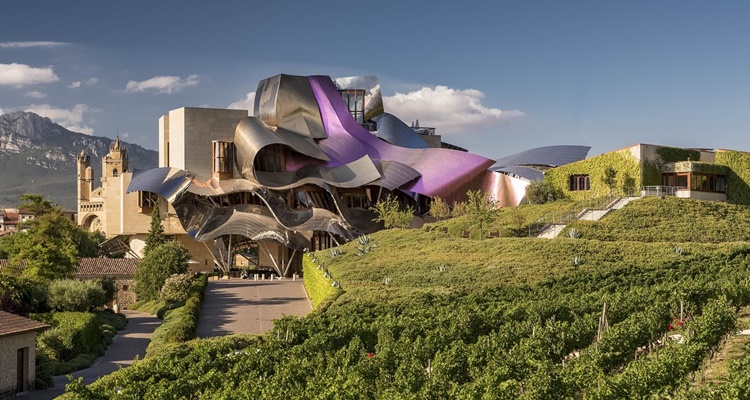 Todos nos sorprendemos ante la singular arquitectura del Museo Guggenheim, conseguida por Frank Gehry. Y no muy lejos de Bilbao, en La Rioja alavesa, se encuentra un hotel de lujo que permite alojarte en él.