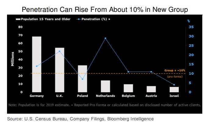 La inglesa Just Eat, tras anunciar un principio de acuerdo de fusión con la holandesa Takeaway.com, necesita aumentar su penetración entre un 10 y un 15% en sus mercados clave para mantener el crecimiento de los ingresos y construir una escala que le permita mejorar el Ebitda por pedido. Por ahora, según el último análisis de Bloomberg, está sacrificando la rentabilidad en estos países para luchar contra sus rivales.