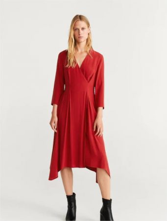 Y este vestido de Mango cuenta con unos cortes que lo hacen único y diferente. Solo con ver la parte frontal, con ese escote de pico cruzado, te enamorarás de él.