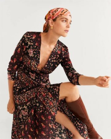 Comenzamos este recopilatorio con este vestido de Mango que destaca por su diseño midi. Un modelo con diseño estampado y falda acampanada.