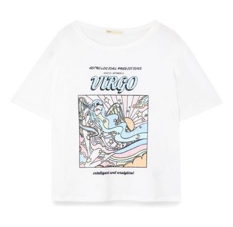 Por que, ese es otro detalle a tener en cuenta. Da exactamente igual el signo del zodiaco que seas. Si te gustan estas camisetas del horóscopo de Stradivarius, no dudes en ponértelas. Verás que, hay un primer modelo en color blanco básico, correspondiente a Virgo.