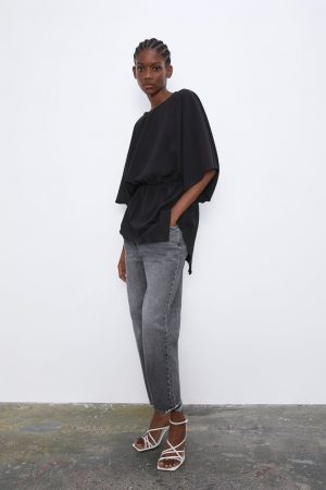 Comenzamos este recopilatorio con esta camiseta de bajo asimétrico disponible en Zara. Es un modelo realmente ponible, que podrás utilizar en tu día a día para ir al trabajo, o incluso en una cena romántica con tu pareja.