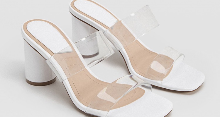 Estas sandalias lo tienen todo para convertirse en un hit de temporada: son blancas, tienen la suela cuadrada, tacón de 7 centímetros, muy cómodo de llevar y tiras de vinilo.