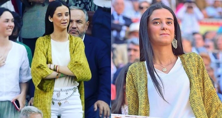 Se trata de un kimono de Nícoli que utilizó para acudir a una corrida en Las Ventas. En su look destacan los accesorios: unos ear cuffs en plata que cubrían prácticamente la totalidad de su oreja y un cinturón con cadenas del que colgaban algunos abalorios. Pero este kimono lo ha reciclado varias veces demostrando que ofrece muchas posibilidades.