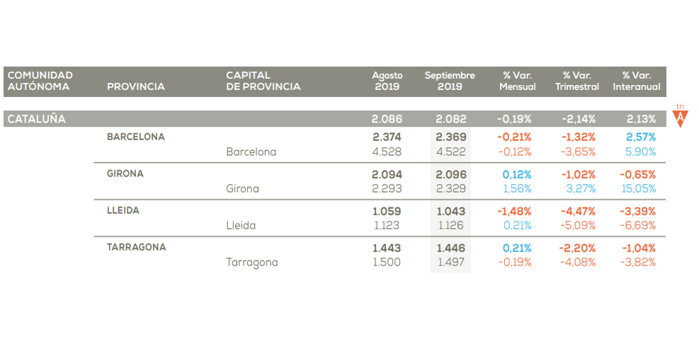 En concreto, el precio de las viviendas de segunda mano en Cataluña entre junio y septiembre ha descendido un 2,14% comparado con el mismo periodo de 2018. Este dato contrasta con Madrid, que ha registrado el mayor aumento del país en este periodo (+2,45%).