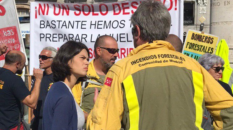 Isa Serra, portavoz de Unidas Podemos en la Asamblea de Madrid, también se ha posicionado a favor de las demandas de estos profesionales: «nos hemos reunido con los bomberos forestales de la Comunidad de Madrid (CAM) para mostrarles nuestro apoyo”. La portavoz de la formación morada en Madrid arremetía contra el partido en el Gobierno manifestando que, “nos parece una vergüenza que cada vez que se produce un incendio los cargos del PP de la CAM aparenten preocupación cuando llevan años que no dejan de recortar personal, precarizar condiciones de los bomberos forestales, y degradar el sistema público de prevención y gestión de incendios privatizando los servicios”. Serra rechaza el sistema mixto –público-privado- por el que se gestiona el servicio, “necesitamos apostar por la prevención y garantizar un sistema 100% público, tanto en prevención como en extinción de incendios porque no valen discursos vacíos respecto al cambio climático, necesitamos políticas concretas”, aseguraba en esta línea.